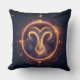 Glowing Aries Zodiac Symbol on a Starry Space Cushion