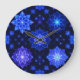 Add a touch of mystical elegance to your space with this captivating wall clock. Featuring a seamless pattern of intricate glowing blue and purple floral motifs and abstract snowflake-like shapes against a deep dark background, this clock is more than just a timepiece – it's a work of art.