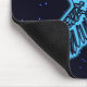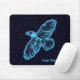 A simple, glowing, blue-and-white line image of a Raven (Corvus corax) on a starry background image. Add your own text.