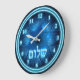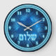 Glowing Blue Shalom On Etched Star of David Large Clock