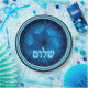 An elegant design featuring glowing blue and white Hebrew text reading, "Shalom" (שלום - peace) superimposed on a blue, etched-look fractal image of a Star of David.