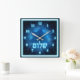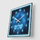 Glowing Blue Shalom On Etched Star of David Square Wall Clock