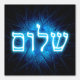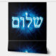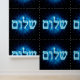 Glowing blue and white Hebrew text reading, "Shalom" (שלום - peace) superimposed on an elegant, blue, etched-look fractal image of a Star of David.