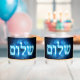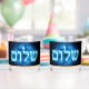 Glowing blue and white Hebrew text reading, "Shalom" (שלום - peace) superimposed on an elegant, blue, etched-look fractal image of a Star of David. Customise by adding your own text on the reverse side.