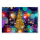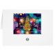 Beautiful and Colourful Holiday Note Card Featuring Glowing Christmas Lights Bokeh Golden Tree & Stars Design