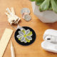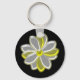This lovely keychain features a digital image of a daisy flower with white and yellow coloured petals with a yellow centre. The petals look like they are glowing with a beautiful reflective quality. The flower is on a black background for maximum contrast and the result is stunning.