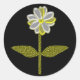 This cuite set of floral stickers features a digital image of a daisy with a green stem with two green leaves on it and white and yellow coloured petals with a yellow centre. The petals look like they are glowing with a beautiful reflective quality. The flower is on a black background for maximum contrast and the result is stunning.