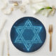 Hanukkah party design a blue glowing, electric Star of David with twinkles.