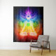 Wall tapestry of Glowing with their respective colours, Qi energy gates, chakras of human body esoteric conceptual art. Yoga and meditation.. Colourful illustration on black background. Unauthorised use is prohibited. Copyright Alex Maxim / Maximimages.com
