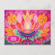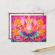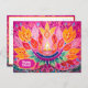 This vibrant Diwali card is a celebration of joy and light, designed in a style reminiscent of feminine sticker art. At its centre, a beautifully detailed diya lamp radiates with an array of colours. The diya is adorned with intricate leaf patterns, each petal meticulously designed in light magenta and orange hues.