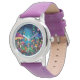 The watch looks exactly as depicted. I was especially pleased with the watch band, which is a nice quality, supple leather. I point this out because an option, which was sold out, was with a multi-colored but clearly plastic band. This is the better choice, in my view.
