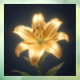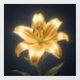 Golden lily flower in full bloom, luminous metallic gold petals with soft gradient highlights. Delicate natural detailing, dark moody background for dramatic contrast.