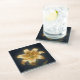 Glowing golden lily flower glass coaster