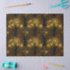 Immerse yourself in the eerie glow of this Halloween bokeh seamless pattern tissue paper, featuring dark silhouetted trees against a luminous golden background. Bats flutter between branches as warm, glowing orbs of light create a magical, haunting atmosphere. This glowing forest design captures the essence of Halloween night in a modern bokeh style.