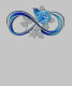Luminous infinity symbol with glowing, beautiful, lushly blooming rose made of blue flames on black background.