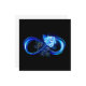 Luminous infinity symbol with glowing, beautiful, lushly blooming rose made of blue flames on black background.