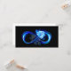 Luminous infinity symbol with glowing, beautiful, lushly blooming rose made of blue flames on black background.