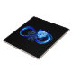 Luminous infinity symbol with glowing, beautiful, lushly blooming rose made of blue flames on black background.