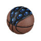Luminous infinity symbol with glowing, beautiful, lushly blooming rose made of blue flames on black background.