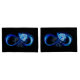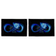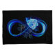 Luminous infinity symbol with glowing, beautiful, lushly blooming rose made of blue flames on black background.