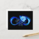Luminous infinity symbol with glowing, beautiful, lushly blooming rose made of blue flames on black background.