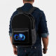 Luminous infinity symbol with glowing, beautiful, lushly blooming rose made of blue flames on black background.