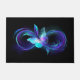 Infinity symbol with magical, purple glowing butterfly with transparent wings, on black background. Glowing butterfly.