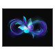 Infinity symbol with magical, purple glowing butterfly with transparent wings, on black background. Glowing butterfly.