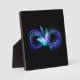 Infinity symbol with magical, purple glowing butterfly with transparent wings, on black background. Glowing butterfly.