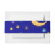 Invitation belly bands with elegant vintage art of a colorful glowing moon and stars against a blue sky etching.