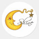 Fun golden, glowing, and sparkling moon with a gold glitter like star dangling overhead, with the word shine written in a cursive scribble like font.