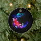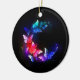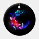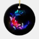 Glowing Neon Night Butterflies on Black background Ceramic Ornament