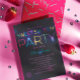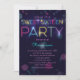 Sweet Sixteen party invitation in dark purple with glowing neon letters and bokeh. Perfect for a glow in the dark themed occasion.