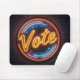 A neon sign with the word "Vote" glows brightly against a dark, brick wall background