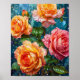 Glowing Orange Roses with Dew Drops 🌹🧡💧✨🌿 Poster