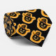 Neck Tie, business suite attire apparel and casual fun Halloween fashion statement accessory with Glowing Pumpkin Witch with black background illustration custom printed to order with original artwork design images by The Fabric Seal Tie Shop at Zazzle #ZazzleMade https://www.zazzle.com/store/thefabricsealtieshop with a blackened black silhouette of a creepy looking witchy pumpkin wearing a witch’s pointed conical crown hat and buckle strap with a flaming fiery white hot golden orange fire glow behind it in the background and through the carved out pumpkin eyes, nose and mouth.
