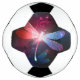 Glowing, flying, red dragonfly, with transparent, detailed wings on dark, nocturnal, luminous background with tropical plants and fireflies. Red dragonfly.