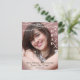 Your graduate's photograph takes centre stage on this graduation announcement postcard. At the top of the card is a string of white glow lights, while your custom text is in white at the right side, and dark grey at the bottom. The back has two more text fields to contain your information.