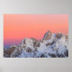Stunning scenery just after the sunset with the sky in magical colours and snowy mountains.