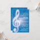 Make the party all about music with this fun party invitation that would be great for a musician or just anyone into music. A large glowing treble clef overlays bright blue and purple beams. Sheet music is added as a subtle texture underneath. The reverse has the beams and an area to add the honoree's name or other information. Add any extra information at the bottom of the reverse side or delete the text block to leave it blank. Appropriate and versatile for any age.