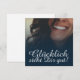 Kompliment Karte mit lachendem Frauengesicht und handschriftlichen Grüßen auf der Vorderseite der Karte. Restliche Flächen stehen zur freien Verfügung.