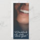 Kompliment Karte mit lachendem Frauengesicht und handschriftlichen Grüßen auf der Vorderseite der Karte. Restliche Flächen stehen zur freien Verfügung.