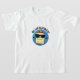 100% cotton so perfect for summer, It is a nicely designed t-shirt, the fabric is soft and the seams finished well, the body of the t shirt has no side seams. I bought a medium size for my two grandsons, aged 9 and 8 it will be slightly big on them but I would rather that than too small
