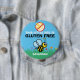 This little bee is gluten free. Bright design with yellow bumblebee helps alert others of dietary restrictions. Red bold 'no gluten' on blue sky with green grass and flowers background. Great for kids with celiac disease to attach to lunchbox, book bag or safe snack box kept at school. Choose from large and small sizes. Customise with name or other text or edit to remove name. Designs by Lil Allergy Advocates www.lilallergyadvocates.com