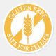 Gluten Free Safe for Celiacs awareness sticker featuring bold golden-orange design with crossed-out wheat symbol. Perfect for labeling food containers, water bottles, laptops, lunchboxes & kitchen items. Durable waterproof vinyl ideal for celiac disease awareness, gluten-free living, and identifying safe foods. Great gift for anyone with gluten intolerance or sensitivity. Help manage dietary restrictions with this clear, professional celiac-safe badge sticker.