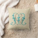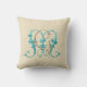 A vintage monogram with the letters GM in shades of teal, turquoise, blue and beige.