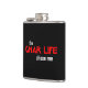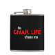 The flask itself is fine. It’s a cheap flask, obviously bought in bulk, however am prepared to overlook that. Given that it is a personalized item, I would have liked to have seen gift boxing instead of the generic packaging. Terrible printing, and/or quality. It’s a cheap, tacky vinyl. It is not cut straight and is also applied in a way that it is overhanging the bottom, causing the glue to catch on items and it will eventually roll and tear, damaging the wrap.