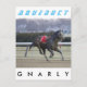 Runaway horse Gnarly, racing through the stretch at Aqueduct with his reins hanging and flopping through the Winter breeze. Gnarly lost his jockey midway through the stretch.