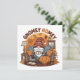 This design depicts a cozy, autumnal scene featuring a gnome at home sitting on a couch, holding a warm mug.