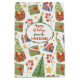 This cute Holiday wrapping paper is all about love and Christmas gnomes! The pattern has gnome, heart, Holiday tree and decorated gift package images. Your custom text is in matching green and red on a white oval on the front.